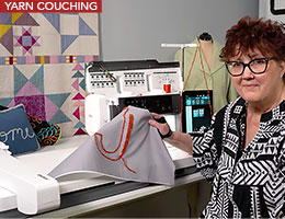 There are some fun embellishment possibilities hiding in your knitting basket. Yarn Couching can add beautiful, dimensional texture to your projects. Janome Educator, Christina Dolinar shows the easy steps, using the Janome Free Motion Couching Foot Set. Two different, quick-to-attach feet accommodate different yarn weights. You’ll actually be couching with a tiny zig zag. To find out more about this technique and others, click directly to the Sew Smarter site.