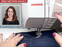 The freedom to use free motion! If you’re brand new to this technique, it can seem intimidating to even think about giving it a try. Janome Educator, Kate Quinn has a wonderful tutorial that demystifies how to get started: from installing the foot to bringing up the bobbing thread to setting stitch length and thread tension. Kate clearly describes the overall basics as well as special tips that make everything easier. To see this entire tutorial as well as all the other info, click to go directly to the Sew Smarter site.