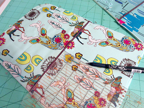 - Flip the panel to the right side and draw in three guidelines: one down the center of each stabilizing strip. You can re-measure and re-draw the same marks on the front as you did on the back, or simply lift up the edge of the panel and transfer the center marks from the back to the front.