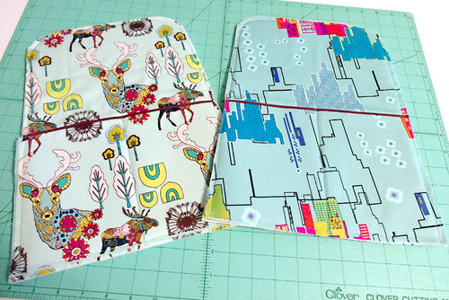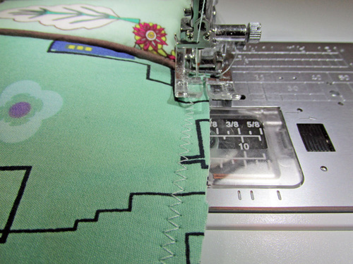- Turn the cover right side out. Trim any unevenness from the bottom edge, and stitch around the entire bottom edge with a zig zag to flatten and secure all the layers.