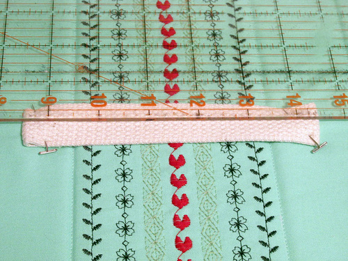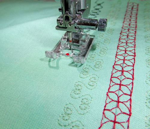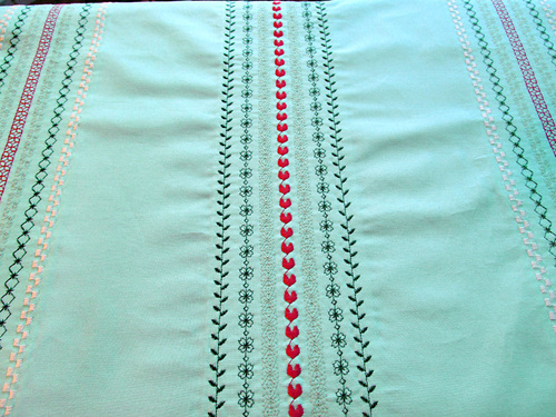 @ Carolyn – Yes, you can certainly use a 7mm decorative stitch. You will just want to adjust (probably increase) the number of lines of stitching. This is why practice stitch outs are so valuable. Play with your stitches and the spacing between the rows until you get a look you like within the same area as shown above.
