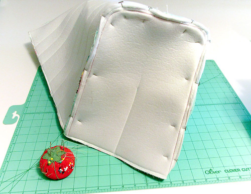 - Following the same steps as above for the exterior of the cover, pin the side panels to the main panel.