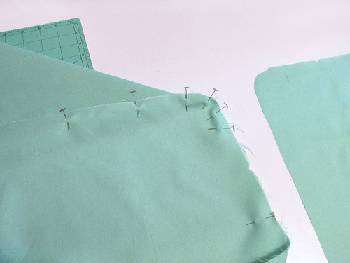 - Align the seams, trim away any unevenness along the raw edges, and pin the layers together.