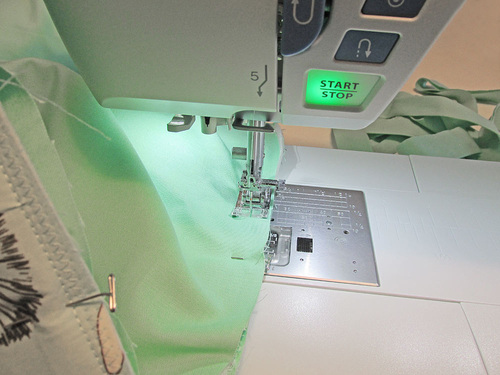 - Following the basting seam line of the piping, stitch through all the layers across the top edge only.