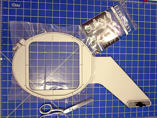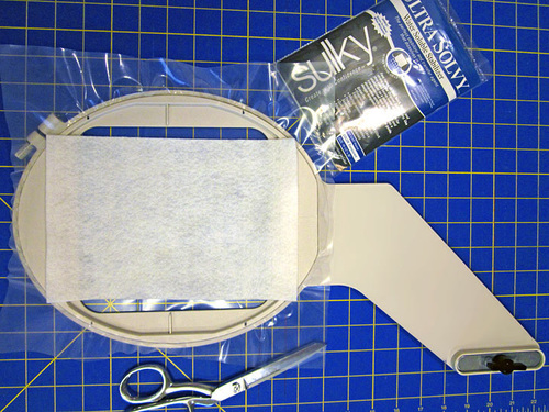 - Hoop the Ultra Solvy stabilizer. The design requires an extra heavyweight water soluble stabilizer, and the Ultra Solvy gives a perfect amount of support to a dense design stitched with the 30 wt thread.