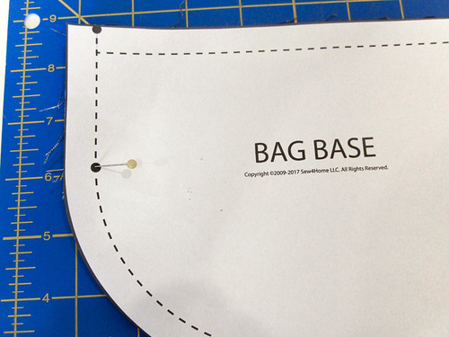 - Using the original pattern as a template, mark the two dots along each side of each accent base panel. These dots indicate the short side seam you will stitch first.