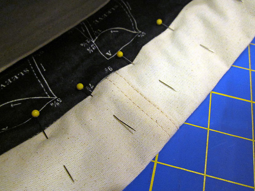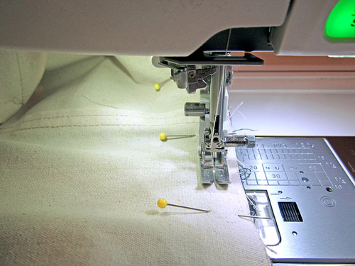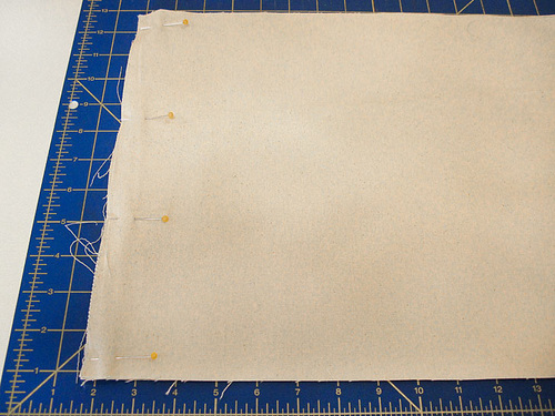 - Pin both pockets in place along both sides,