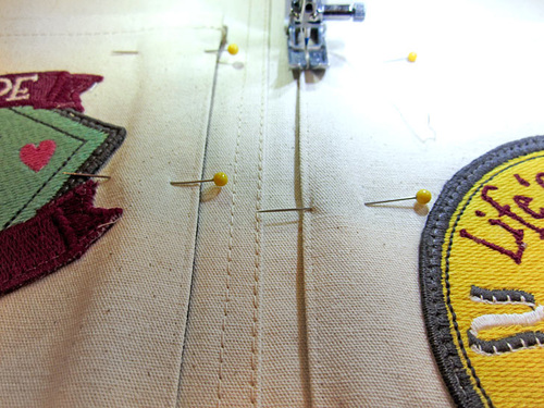 Appliqué the embroidered patches in place