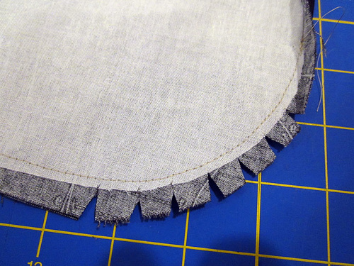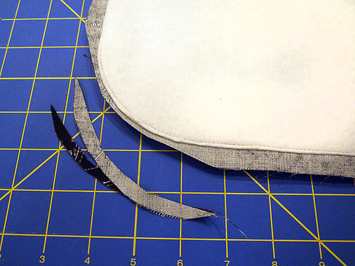 - Trim all the way around as close to the stitching as possible.