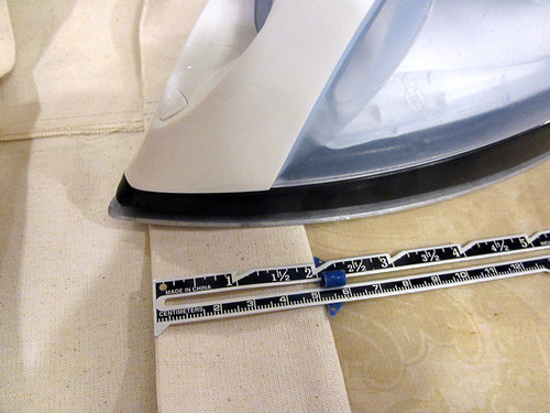 - Fold back long raw edges ½” on both sides and press well.