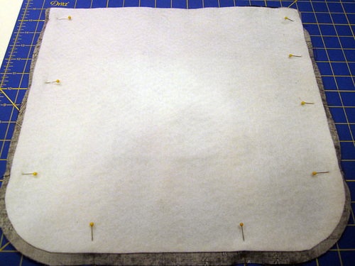- Pin together along both sides and around the curved bottom.