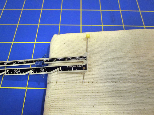 - Using a long, blunt tool gently push out the corners so they are nice a sharp. Press flat. The canvas will form a hem at the upper edge of the pocket on the lining side.