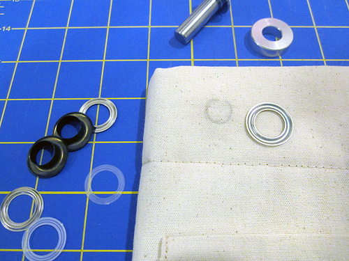 - FOUR ½” grommets + appropriate setting tools; we used a Dritz Fashion Grommet Kit in matte black