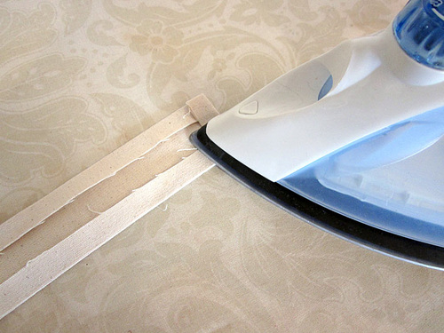 - Fold the strap in half matching the folded edges so it is finished on all sides. Press once more and lightly pin.