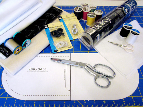 A subtle black quilting cotton in a sewing theme adds a nice accent to the base of the bag and is also used for the lining. The exact print we used is Let’s Sew Clothes from the Draw Near collection by Quilting Treasures, which is no longer readily available, but many manufacturers come out with new sewing-themed collections each season.