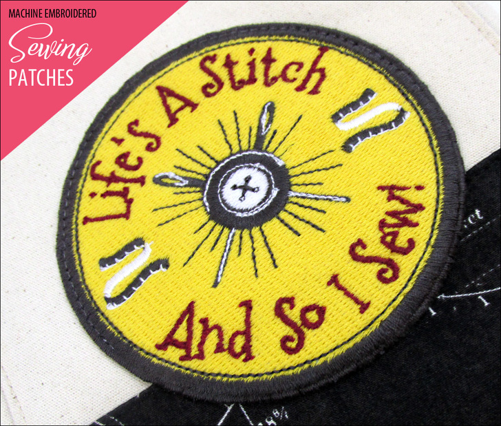 If you’re sewin’ and you know it… clap your hands. Show your sewing pride with these fun machine embroidery patches. We created two custom designs to show how lovely the stitching turns out using Sulky’s 30wt cotton thread. Most folks don’t turn to cotton thread for machine embroidery, relying instead on the polyesters and rayons – but cotton has a wonderful matte finish and the thicker 30wt (⅓ thicker than the more traditional 40wt) provides a rich density. We loved working with it! Thanks to the Sulky sponsorship, both designs are offered in two sizes as free downloads in the six major machine embroidery formats. Let’s “patch things up” shall we?!