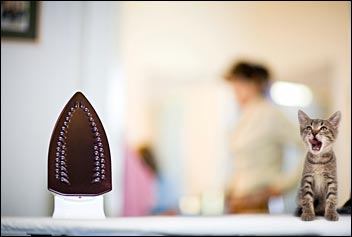 An iron accidentally left on is a fire hazard and dangerous to unsuspecting kids and pets who don’t know it’s hot. Some irons have automatic shut-offs, but the minute the iron moves (perhaps not by you, but by your child) it heats right up again. To help remember to turn off the iron, I use a small desk lamp that shines on my ironing board (handy in itself). I turn it on when I turn on the iron. When I turn off the iron, I turn off the lamp. If I see that lamp on, I know the iron is still on.