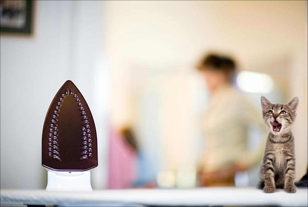 If you have pets or young children, you may need to keep them out of your sewing area while you are sewing. Knocking over the ironing board can have serious consequences, and there are plenty of sharp objects, pins and needles and small objects that just don’t mix with pets and small children. It’s impossible to keep your eye on them 100 percent of the time. Not knowing whether Fluffy found that lost pin is worse than seeing it happen! Check out our tutorial on Sewing With Kids Underfoot for more good ideas.