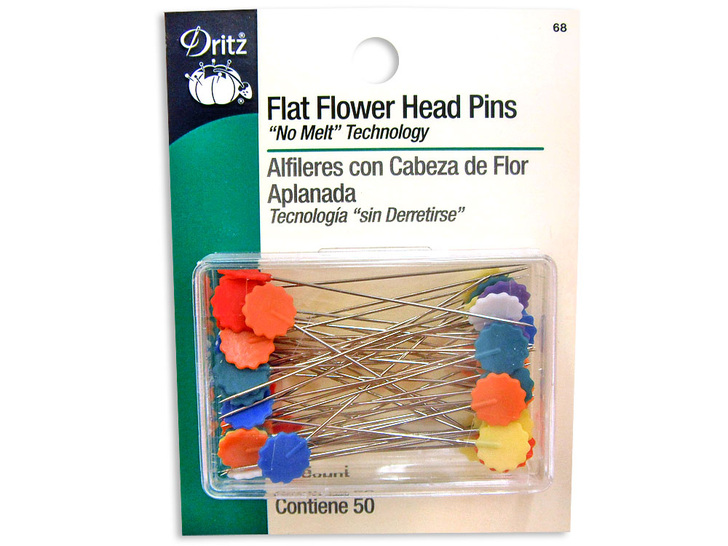 These mesh fabrics tend to be slippery; after all, they’re mostly air! To keep them corralled, use pattern weights or layer the fabric over tissue and pin through the mesh into the tissue. Pinning a pattern to netting is actually easy, because you simply place the pins in the holes of the fabric. It’s best to use pins with large flat tops, such as the flower head pins by Dritz shown below. They’re less likely to slip out through the holes of the fabric.