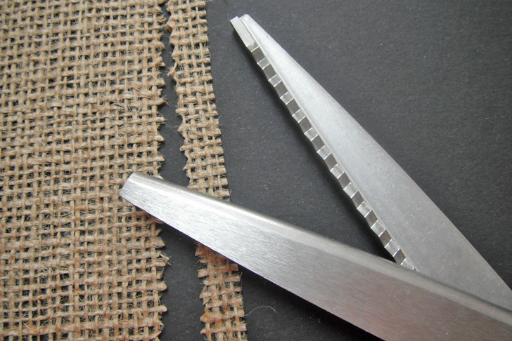 For a quick way to tame ravelly burlap edges, apply a seam sealant (like Fray Check), let dry, then simply trim with pinking shears.