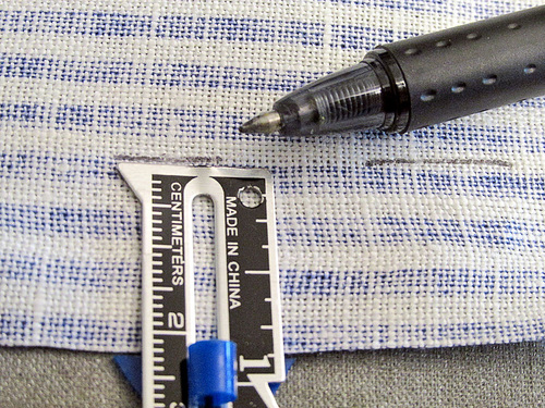 - If you don’t have a seam line or hem line to follow, draw in your own line with a fabric pen or pencil.