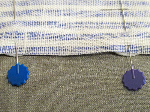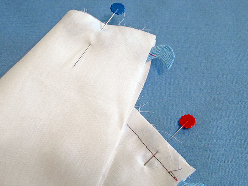 - Pin along each side first, giving yourself a bit extra to work with at the point of the corner.