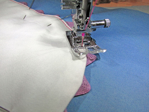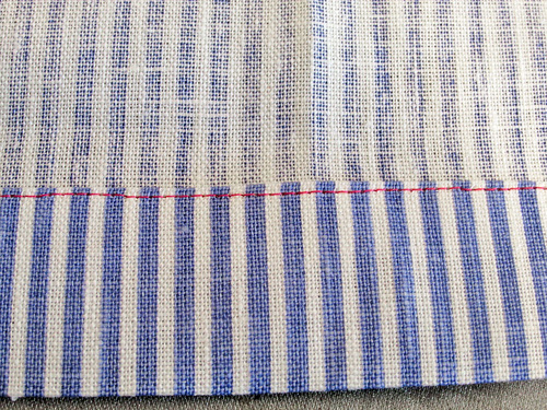 - Edgestitch in place to secure. Again, we are using contrasting thread to best show the technique.