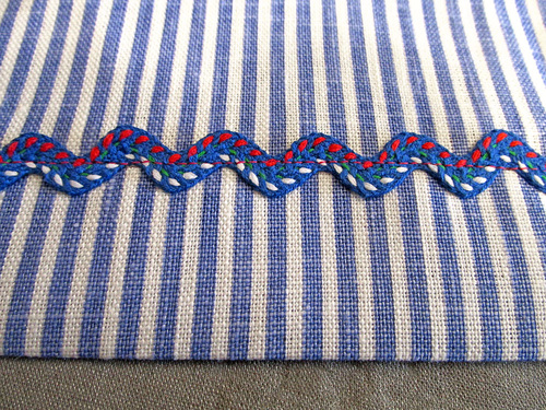 Besides its job as a lace embellishment, one of oldest tasks of rick rack was to provide a finished edge to fabric. Before there were sewing machines and sergers, tightly woven rick rack did the trick.