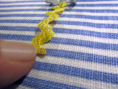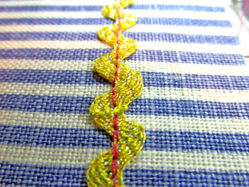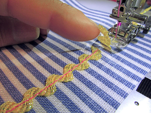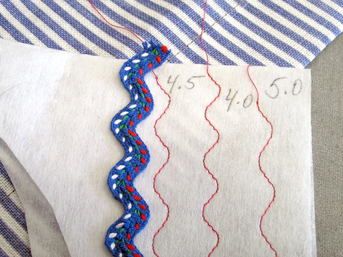 - Experiment with scraps of rick rack and base fabric to get the look you like best.
