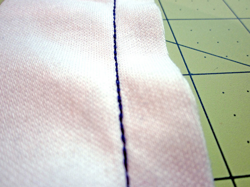 NOTE: If you have limited stitch options, experts all agree that a stitch that is not specifically for knit fabric should be shortened in length. The smaller the stitch, the less likely it is to “pop.”