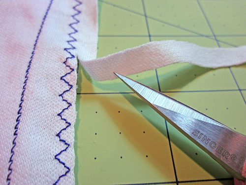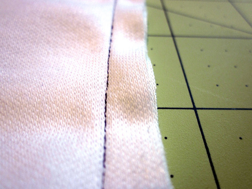 • Instead of using one of the hemming techniques above, you can cover the raw edges with a knit binding.