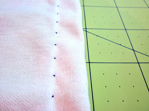 All markings should be done with chalk or a fabric marking pen or pencil. If you’re accustomed to clipping into the fabric, cut notch points rather than a simple straight snip. This helps prevent runs.