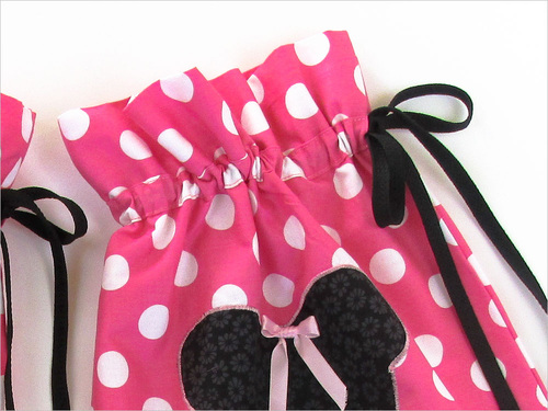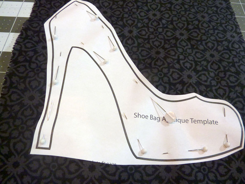 - Download and print out our TWO appliqué templates: Lingerie Bag Appliqué and Shoe Bag Appliqué. Set both template pages aside; do not cut them out quite yet.