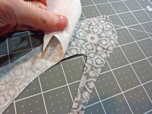 - Remove the paper backing from all the appliqué shapes, revealing the fusing.