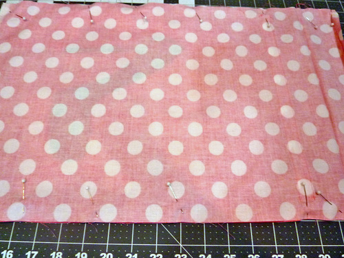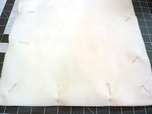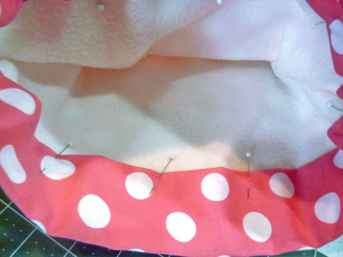 - Place the fleece pair right sides together. Pin in place along both sides and across the bottom.