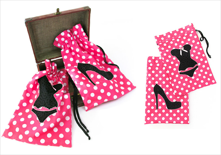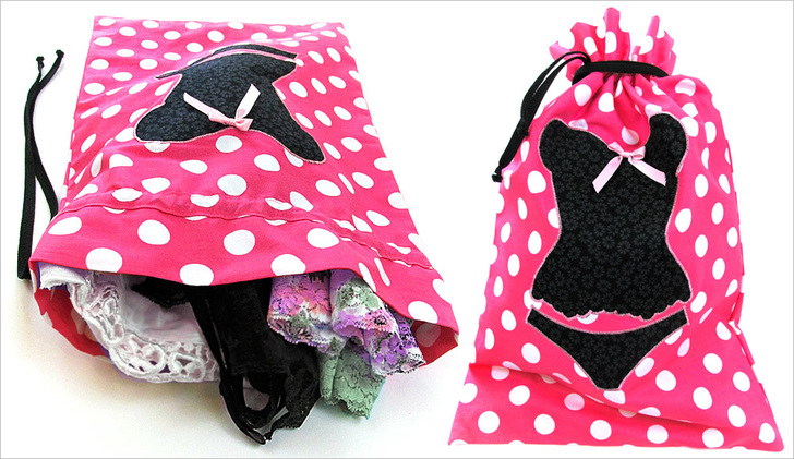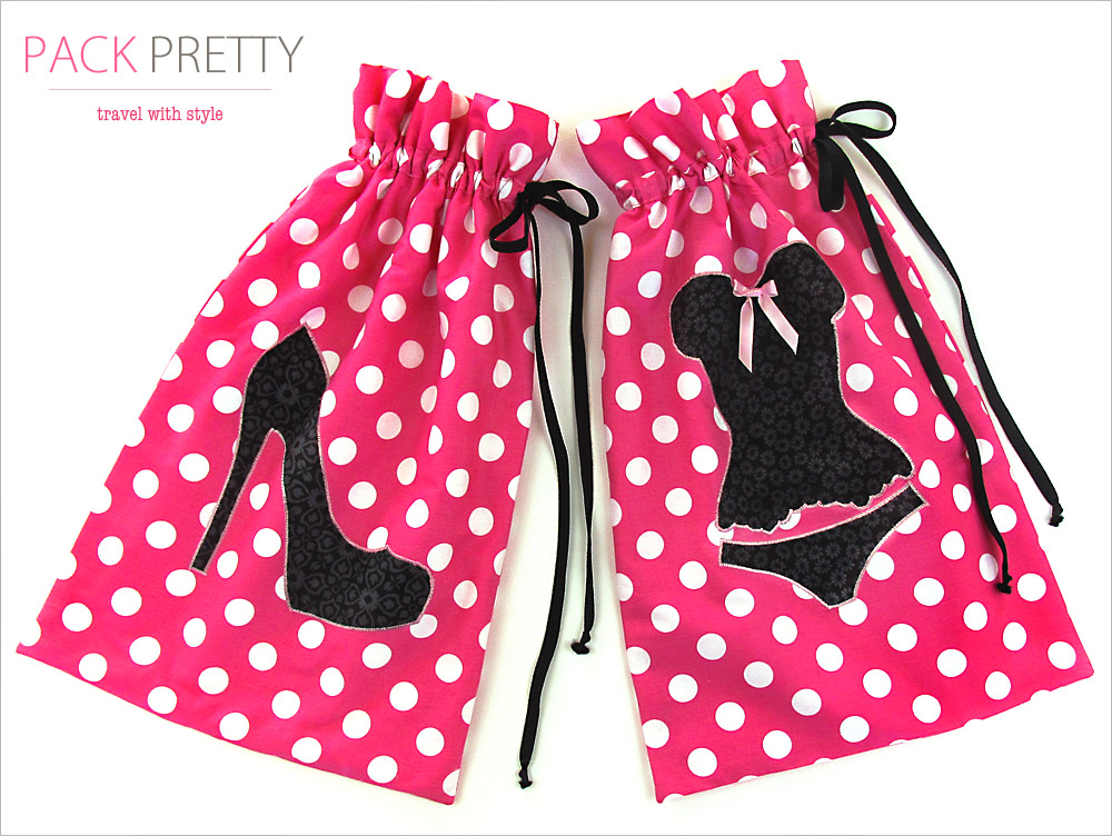 These days, packing to travel can be a challenge since bringing more than one smallish bag can cost a pretty penny. Being a smart organizer has become more important than ever. Everything needs to go into one suitcase as neat and tidy as possible. This makes our shoe and lingerie bags a travel necessity. Both are lined, and both feature cute appliqués to identify the contents.