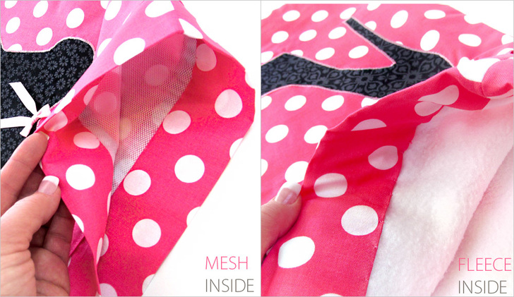 - Find the 13″ x 19″ fleece and mesh lining rectangles.