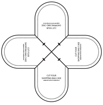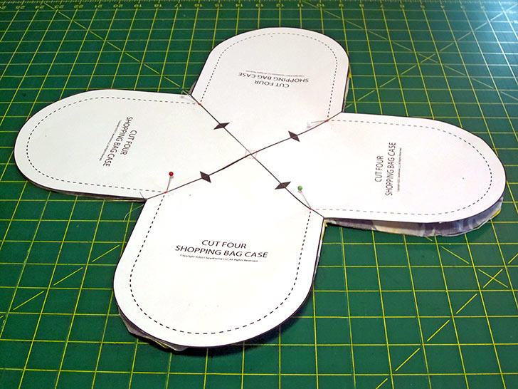 - For the case pattern, aligning the printed arrows, assemble the FOUR pieces into the complete case pattern, which looks a bit like a four leaf clover.