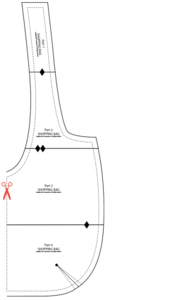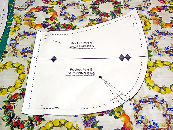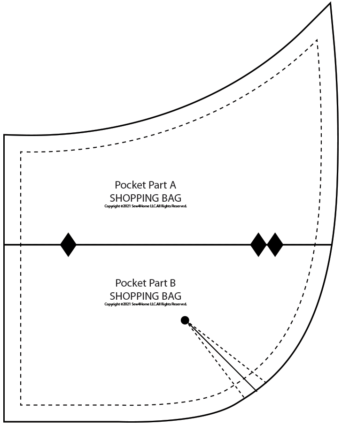- For the front pocket pattern, aligning the printed arrows, assemble Pocket Part A and Pocket Part B into the complete pocket pattern.