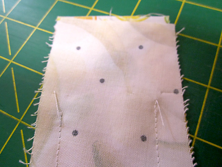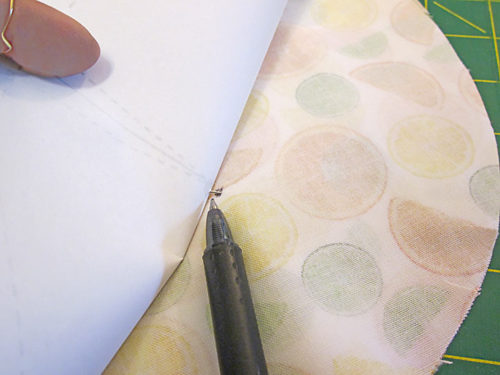 - Similarly to how you marked the dart points above, lift up the paper pattern and transfer the pin points to the fabric. These marks will give you an easy-to-spot pivot point when you are stitching the case’s perimeter seam.