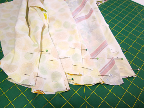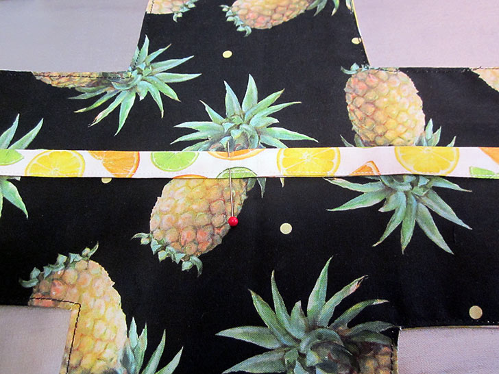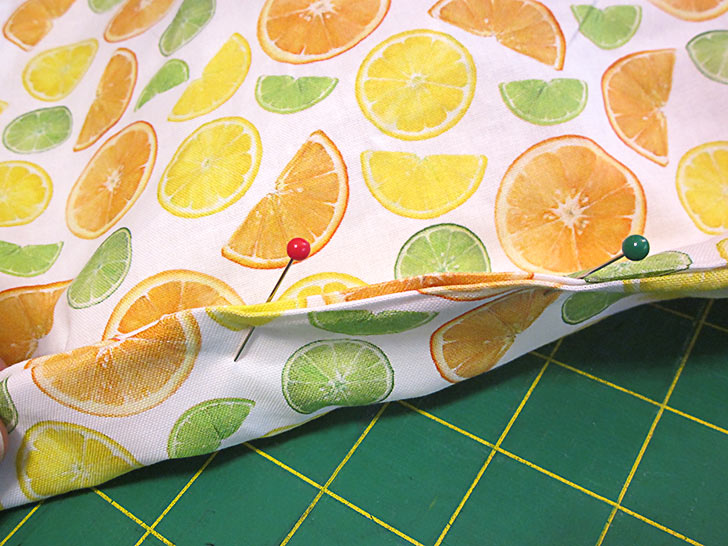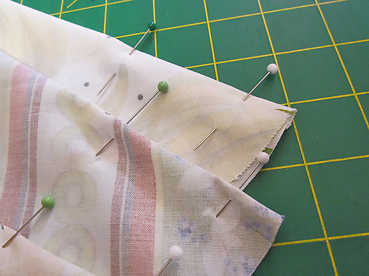 - Pin along just the straight inner edge.