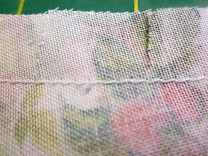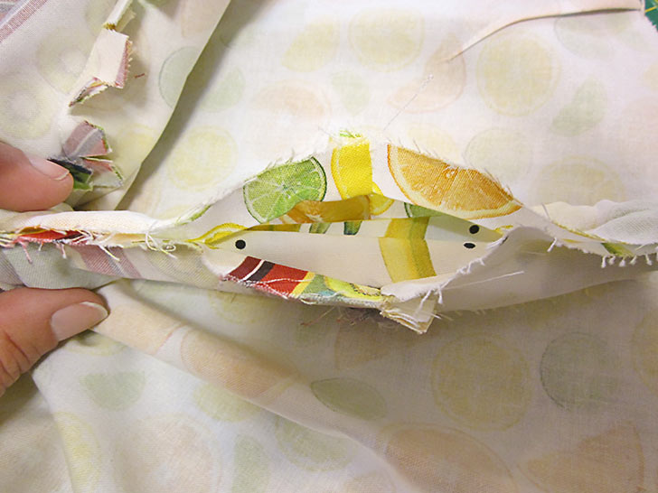 - Keep pulling until you have fully revealed the section with the unsewn edges. You need to pull through enough to fit under the machine.