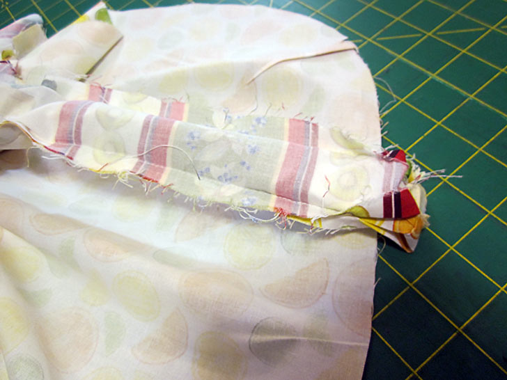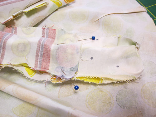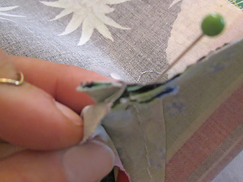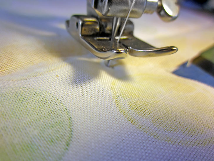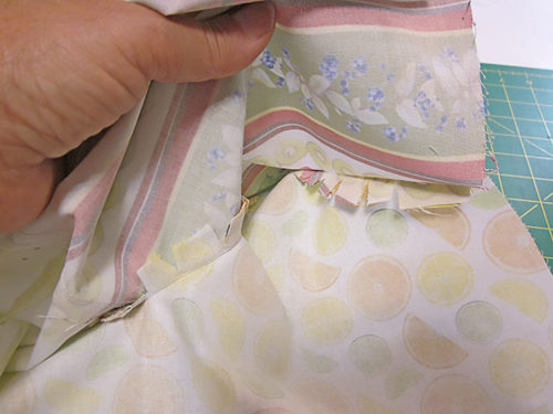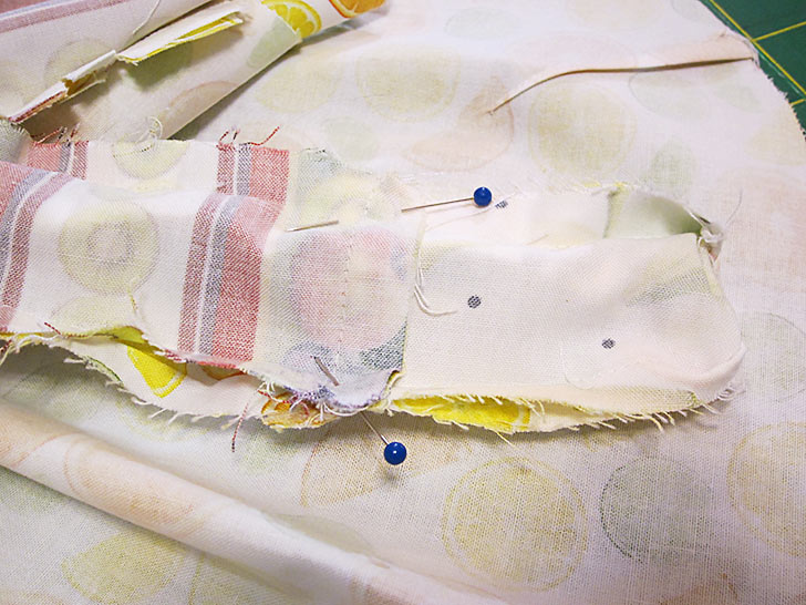 - Using a ½” seam allowance, stitch across each opening, carefully matching the new seam to the end points of the existing seam.