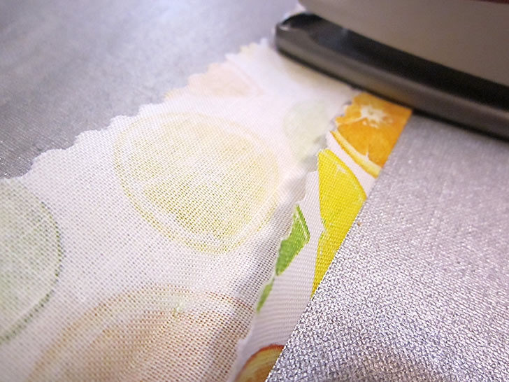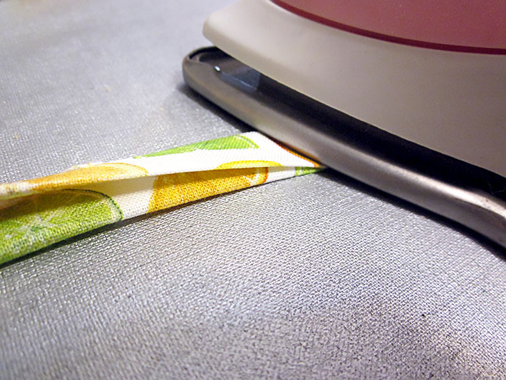 - Unfold each end and fold back the short raw edge ¼”. Press this tiny fold at each end.
