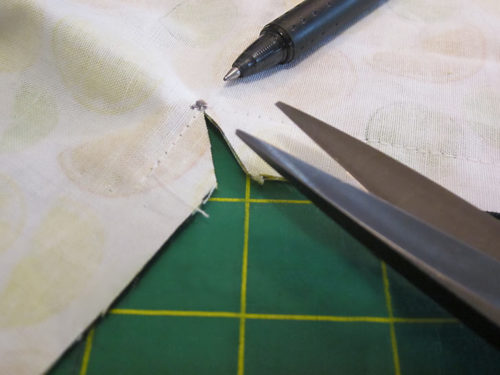 - At each pivot point, clip into the corner. Clip right up to, but not through, the seam. This “releases” the corner and allows it to form a sharp 90˚ angle when turned right side out.