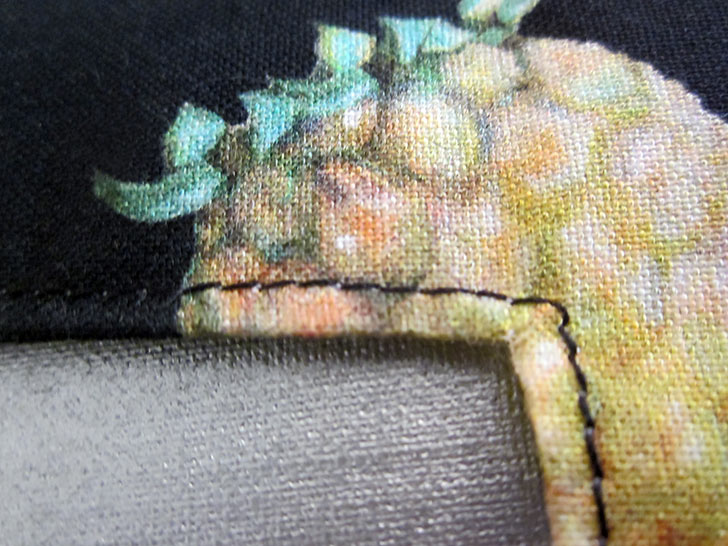 - Re-thread if necessary with thread to best match the exterior fabric in the top and to best match the lining fabric in the bobbin. Slightly lengthen the stitch. Edgestitch all around the perimeter of the case, sharply pivoting at each corner. This seam stabilizes the edge and closes the opening used for turning.