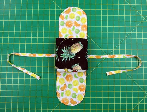 - Press the case flat, pressing in the raw edges along the opening so they are flush with the sewn seam.