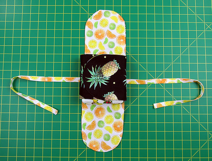 - Finally, roll-fold in thirds to make a little square bundle and set the bundle into the center of the case.