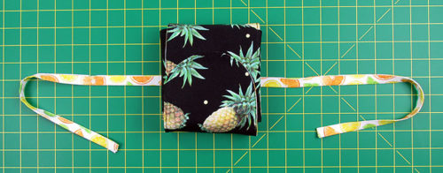 - Attach the tie to the case, stitching through all the layers, with a simple box about ½” square.