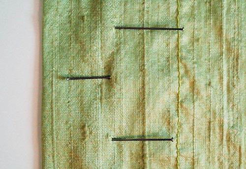 - Mark the spots on this hem for the MIDDLE of each buttonhole as noted below; each spot should be marked with a pin: